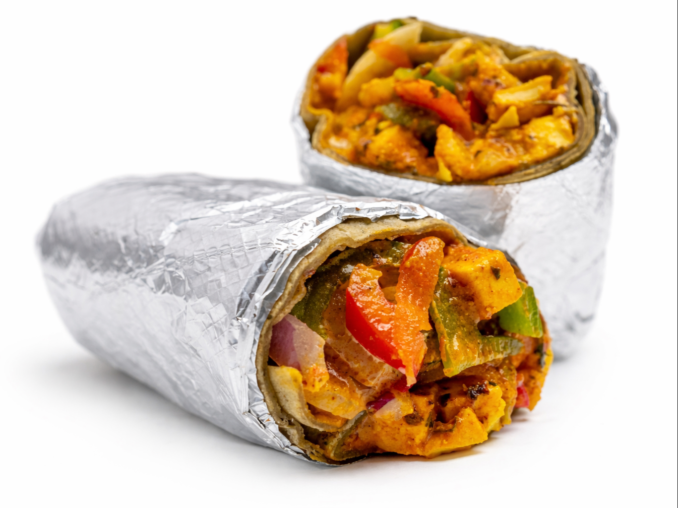 Marinated paneer in a soft spinach tortilla with creamy butter masala, onions, bell peppers, chipotle sauce, and mayo. Choice of side sauce.