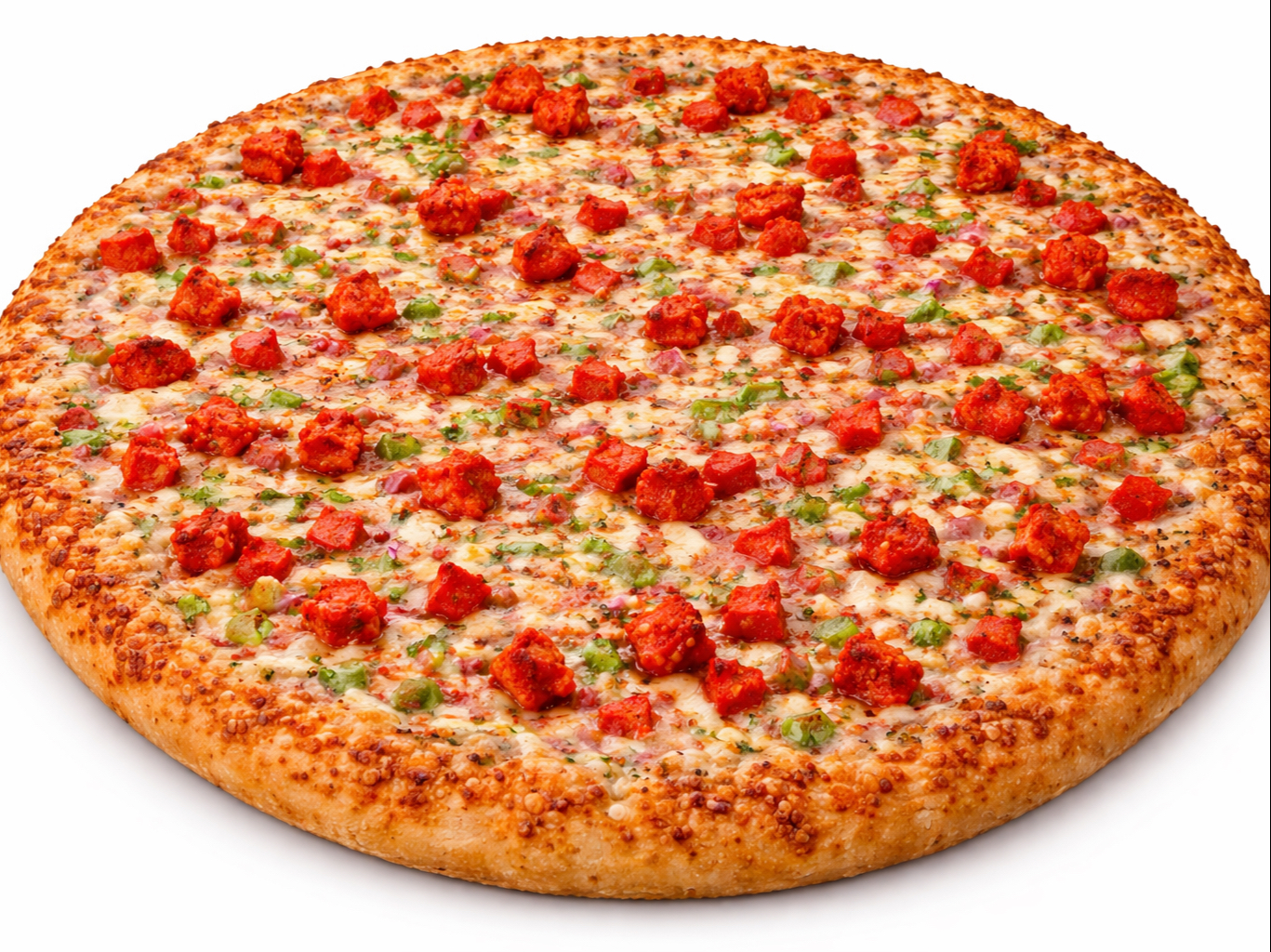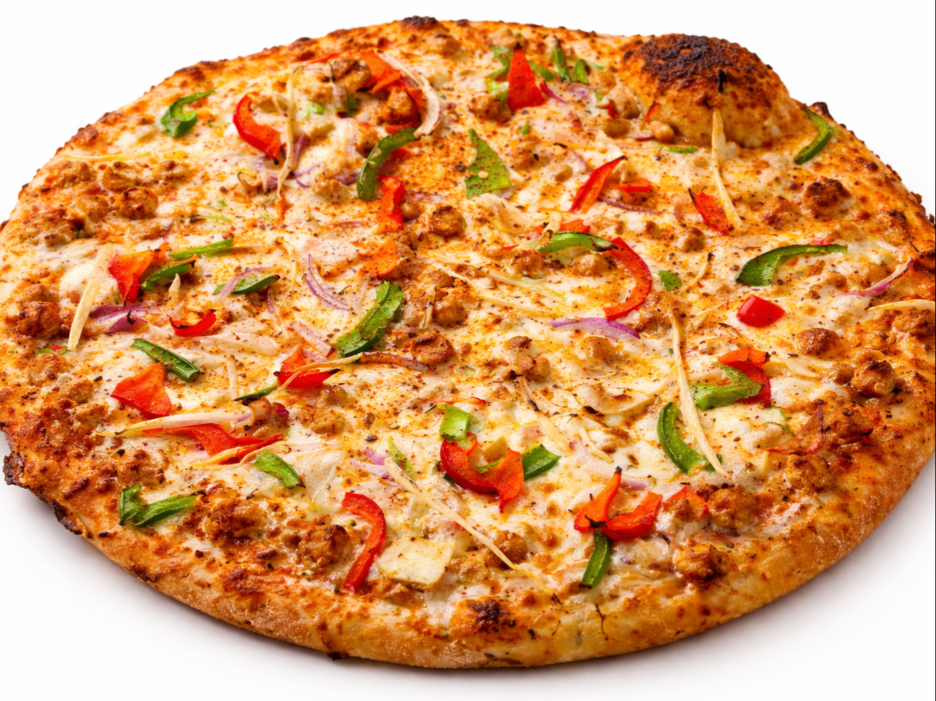 Marinated chicken in rich tikka masala sauce, topped with mozzarella, onions, and bell peppers, baked to perfection.