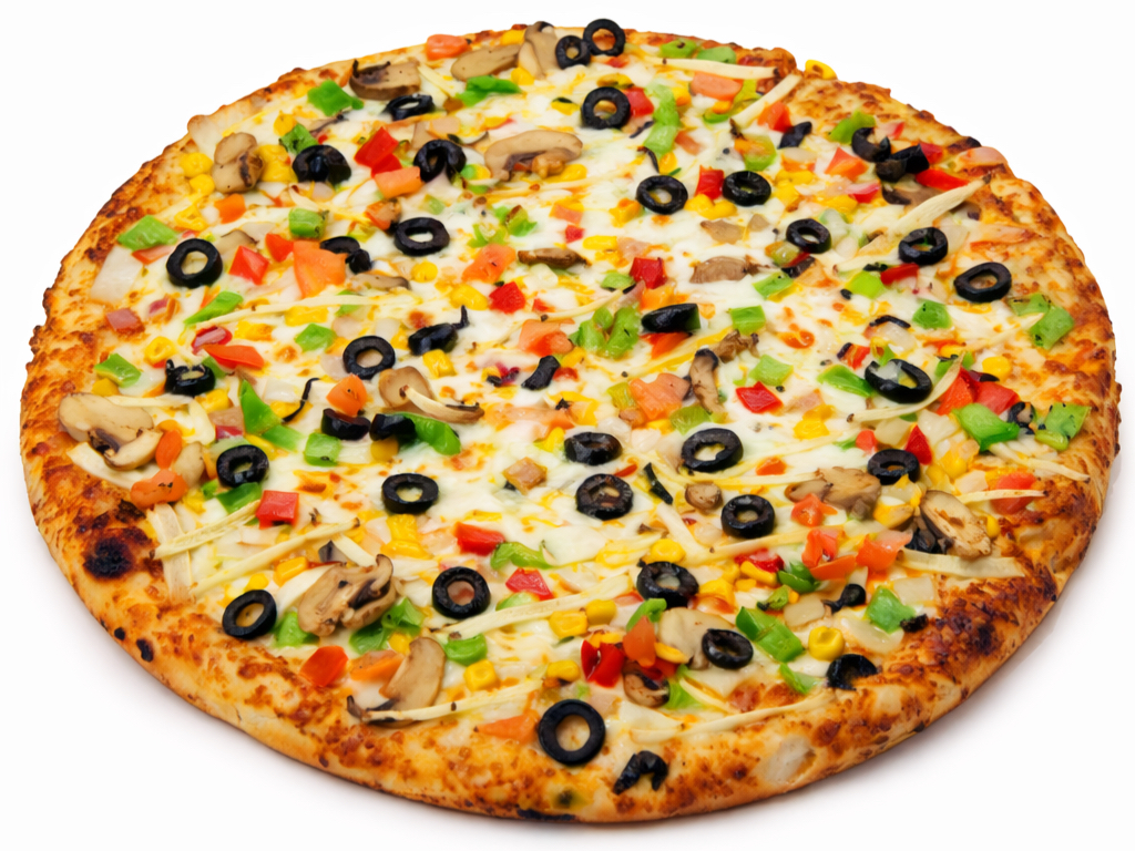 Loaded with onions, green peppers, mushrooms, black olives, and tomatoes topped with mozzarella and our classic pizza sauce on fresh house-made dough. Fresh, colorful, and full of flavor.