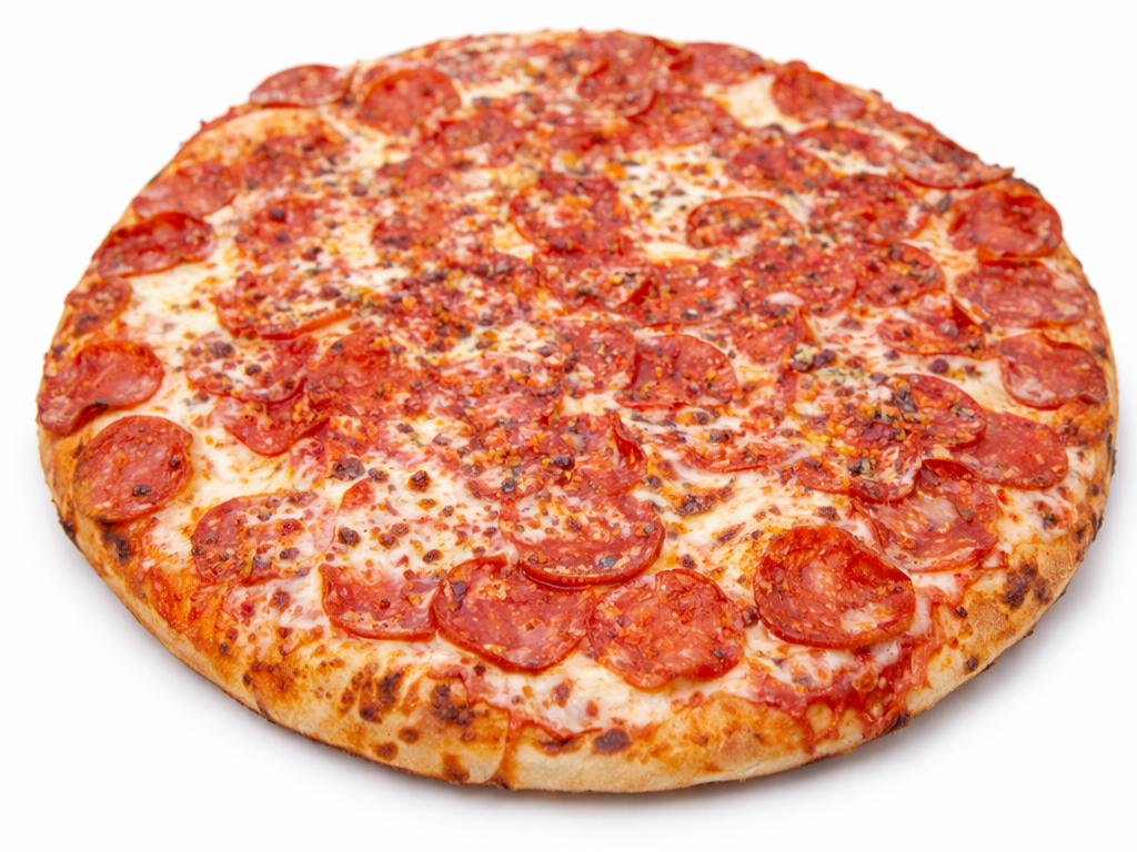 Our signature homemade dough layered with zesty red sauce, loaded with gooey mozzarella cheese, and topped with savory beef pepperoni — baked to crispy, golden perfection.