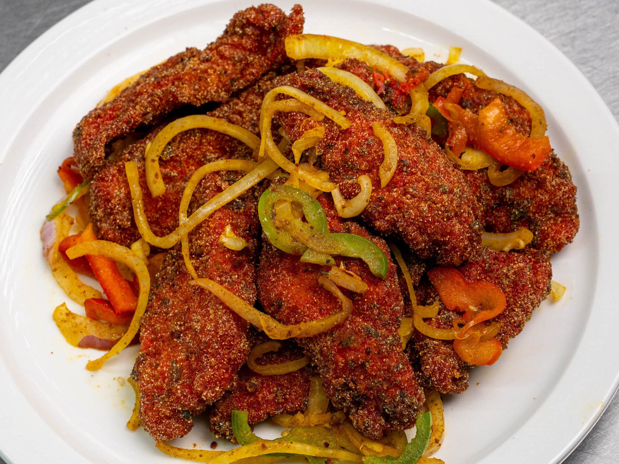 Crispy battered fish fritters seasoned with Indian spices, fried golden and served hot.